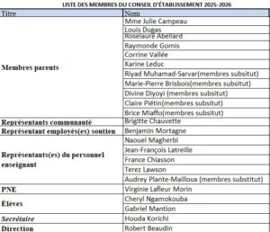Membres du conseil d’établissement 2020-2021